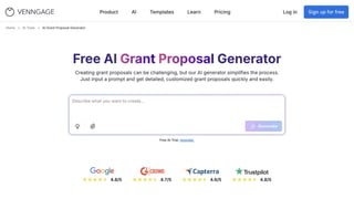 Try it here: https://venngage.com/ai-tools/grant-proposal-generator
