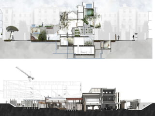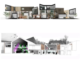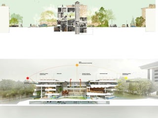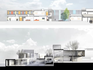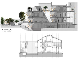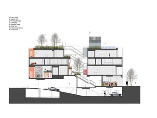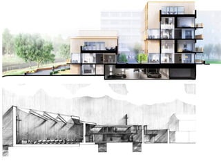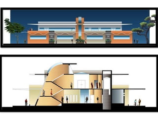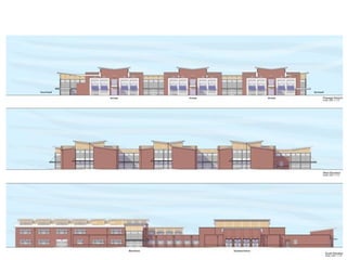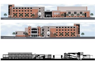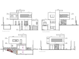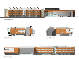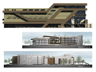 building elevations of different buildings are shown herewith.The facades with different colours and textures are also seen .The composition and combination of massing of the building is also can be seen.Basic design can be very well interpreted through different forms.
