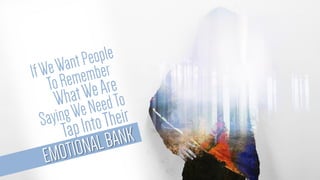 This document provides 10 tips for connecting with an audience emotionally. The tips include knowing your audience and their emotions, building emotional themes in your points, selecting emotive words, telling stories, using humor, using figures of speech, injecting emotion into your voice, matching your body language to the emotional mood, and being honest. The overall message is that audiences respond best emotionally when presentations trigger feelings and use techniques like stories, humor, and body language to engage them.