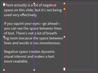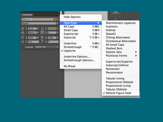 The document discusses typography principles for digital projects, emphasizing typeface selection, contrast for hierarchy, and the importance of negative space in enhancing readability. It also highlights various resources for typography, including notable examples and exercises. Key takeaways include choosing suitable fonts for context and understanding the role of typography in conveying meaning.